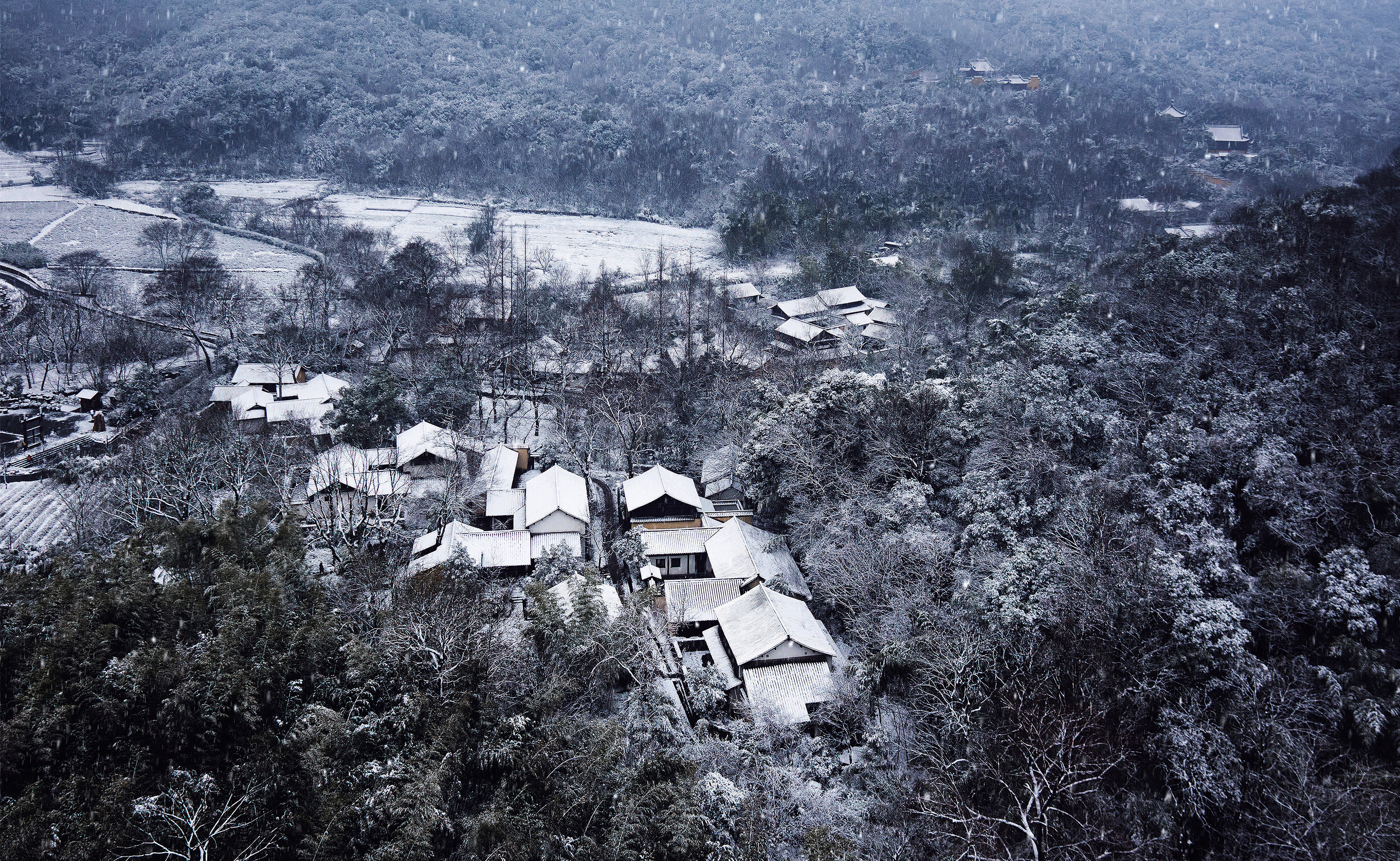 法云村位于杭州西湖风景名胜区,与灵隐禅寺、永福寺等7座寺庙相邻,是上香古道的必经之地,是杭州山地民居的代表性区域。设计以尊重其村落原生结构的主体性和资源价值为前提,充分考虑都市休闲旅游文化的功能需求,除延续其原生结构外,通过虚实关系的处理,使得各板块间的关系相对独立,其间穿插符合各组团功能主题定位的植物景观,使各组团的建筑隐约其间,自然生动地融入整个山林中。